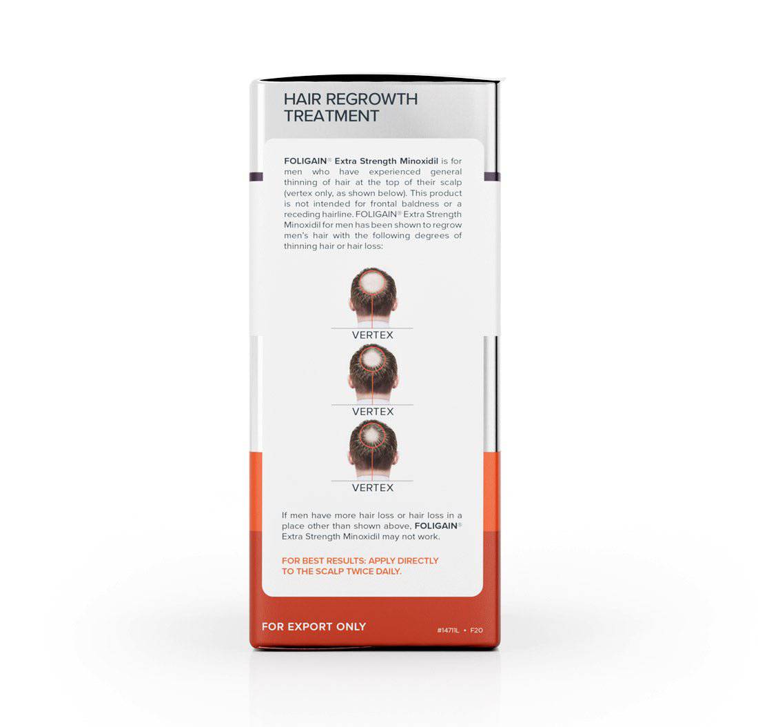 FOLIGAIN Minoxidil 5% Hair Regrowth Treatment For Men is developed for men experiencing general thinning at the top of the scalp, also known as the vertex.