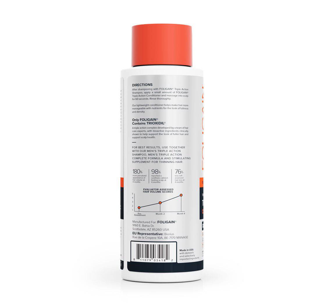 FOLIGAIN Triple Action Conditioner For Thinning Hair For Men with 2% TRIOXIDIL® is formulated to support healthier looking hair density and improve the appearance of the scalp.